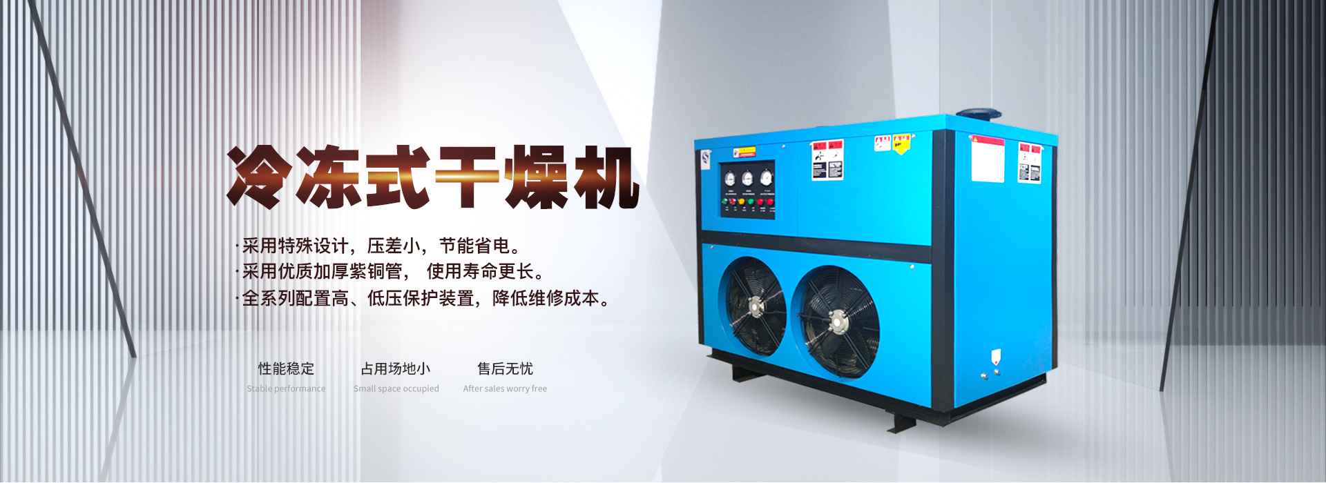 冷凍式干燥機(jī)運(yùn)用了物理原理,將壓縮空氣中的水分冷凍至露點(diǎn)以下,使之從空氣中析出的空氣干燥機(jī)。受限于水的冰點(diǎn)溫度,理論上來(lái)說(shuō)它的露點(diǎn)溫度可接近于0度,